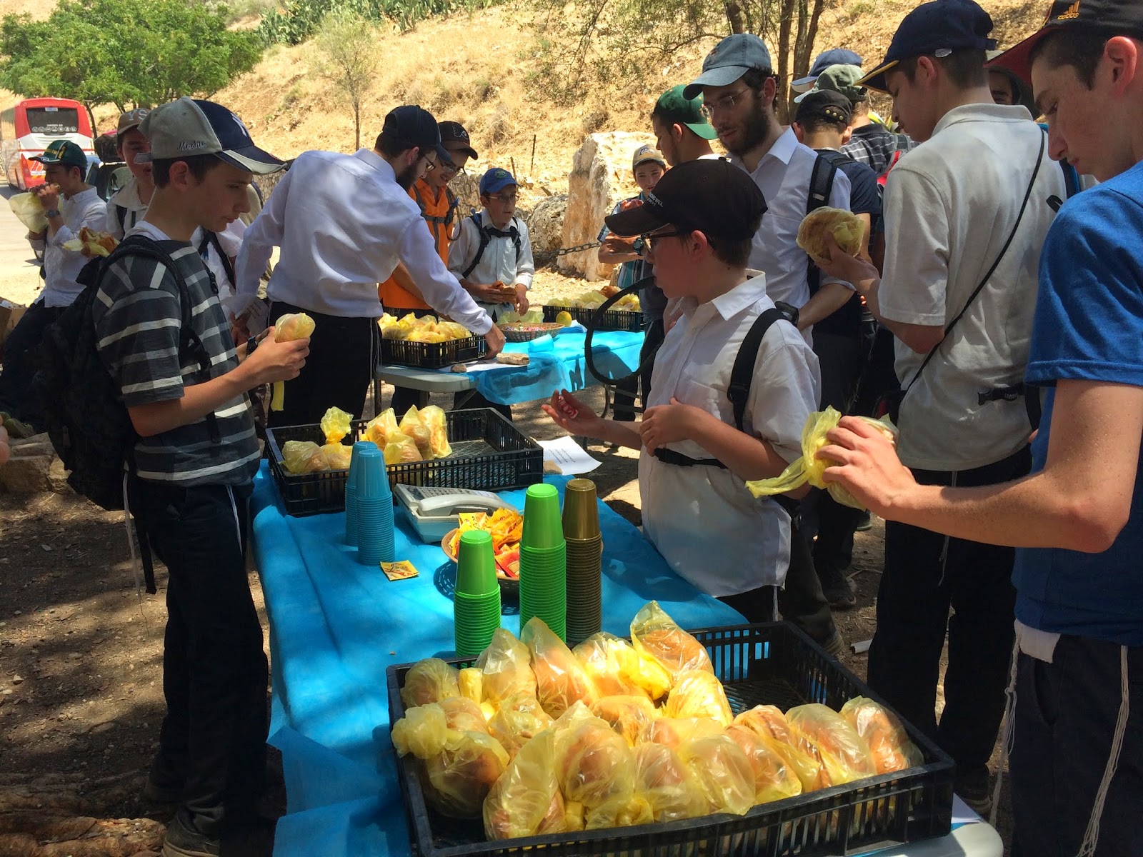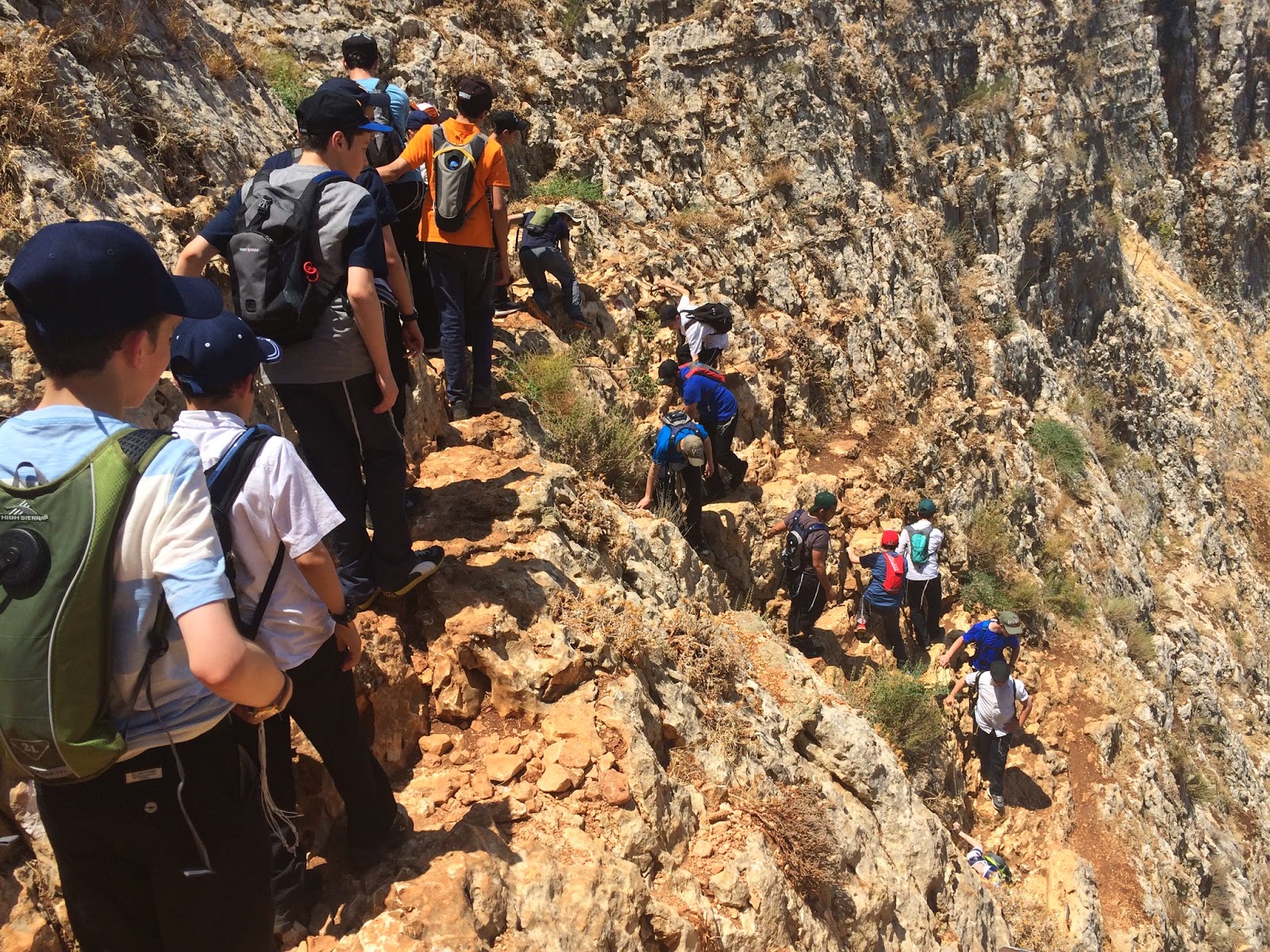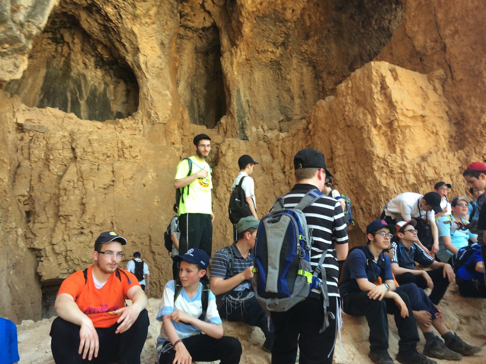 Finally the moment arrived to go on our first trip, and boy was it worth the (two day ) wait. We set off early (10am CST Chabad Standard Time if you know what I mean) and headed towards the site of our first activity...hiking down Har Arbel. I was dying after 2 hours, can't possibly imagine how the yidden did this for 40 years.. They didn't even have CamelBaks. Thankfully we had a great tour guide who explained all the history behind our hike, it really added alot. My favorite part was definitely the caves (I actually climbed into a cave that was a mikva like a thousand years ago, its no 749 but what can you do.) Afterwards we sat for an authentic American lunch (Tuna and Salami sandwiches), and even had time to watch the lawnmowers of a thousand years ago (goats) do their job to maintain the beauty of ארץ ישראל.