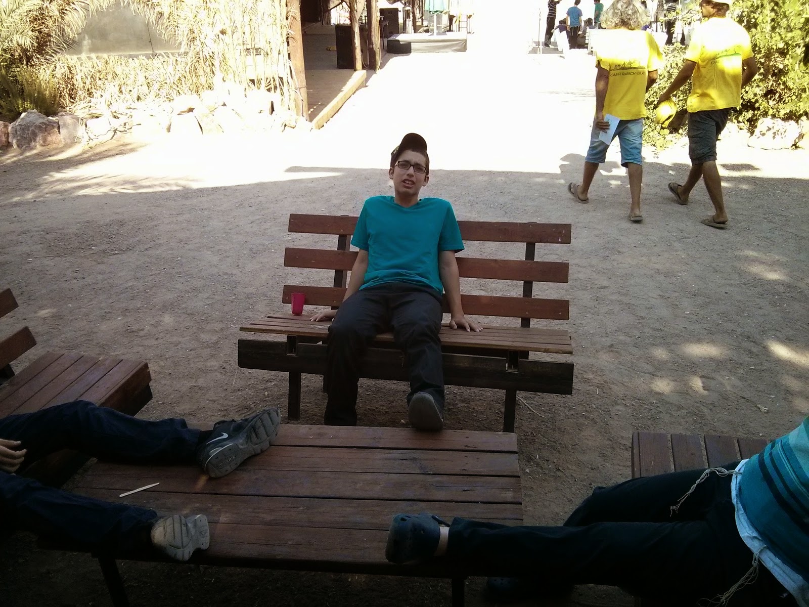 The Jump was basically an elevated platform about 100 feet high where we were given the opportunity to bungee jump. I have to admit that at first I was scared to go, but after seeing the מנהל פועל and the מנהל כללי consecutively jump I had no choice but to follow in their footsteps and take the jump. It wasn't even so bad actually, the hard part is the actual jump but once you take off it is really super fun. Towards the end of the camel/ropes course place we were given delicious goody bags with doritos, cookies, and Israeli goodness drinks. From Eilat we had a 2 hour drive to our final destination for the night: bed and bbq by mitzpe rimon.